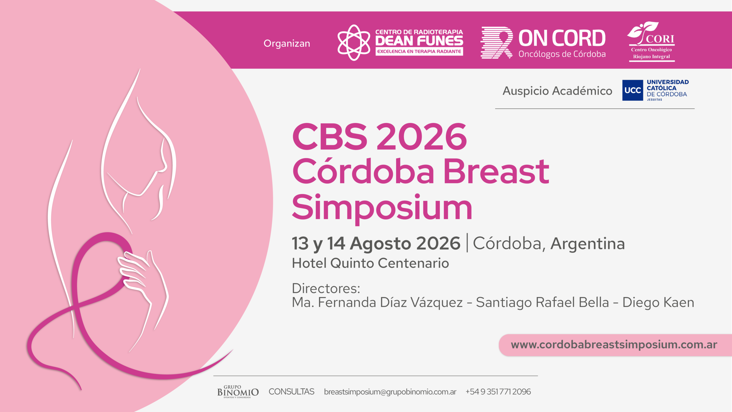 El Comité Organizador se complace en invitarte a formar parte del Córdoba Breast Simposium, un evento único que se llevará a cabo el 13 y 14 de agosto de 2026 en el Hotel Quinto Centenario, en la ciudad de Córdoba, Argentina.